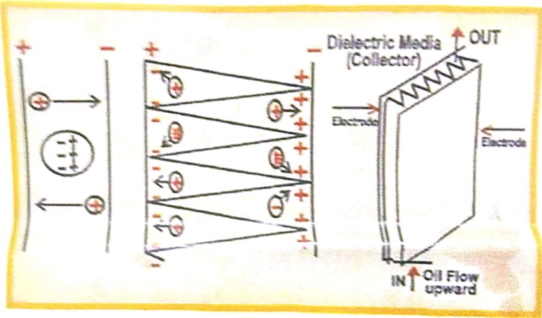 The Electrostatic Oil Filter operates on Electrostatic Principle when the oil Flow’s in the electric field generated over the electrode’s made of stainless steel. These electrodes are wrapped with Di-Electric medial (collectors). The EEOP’s unique design permits it to take advantage of the natural change that each contaminant contains. Contaminants having positive charge are drawn towards negative plates; while those with an inherent negative charge towards positive plate. The neutral contaminants are drawn and desposited by gradient force to the edge of the collectors where the intensity of the deform electric field is the strongest. These sub Micronics contaminated removed by Electrostatic Oil Filtrations which can be metallic , non-metallic, organic or inorganic in nature.